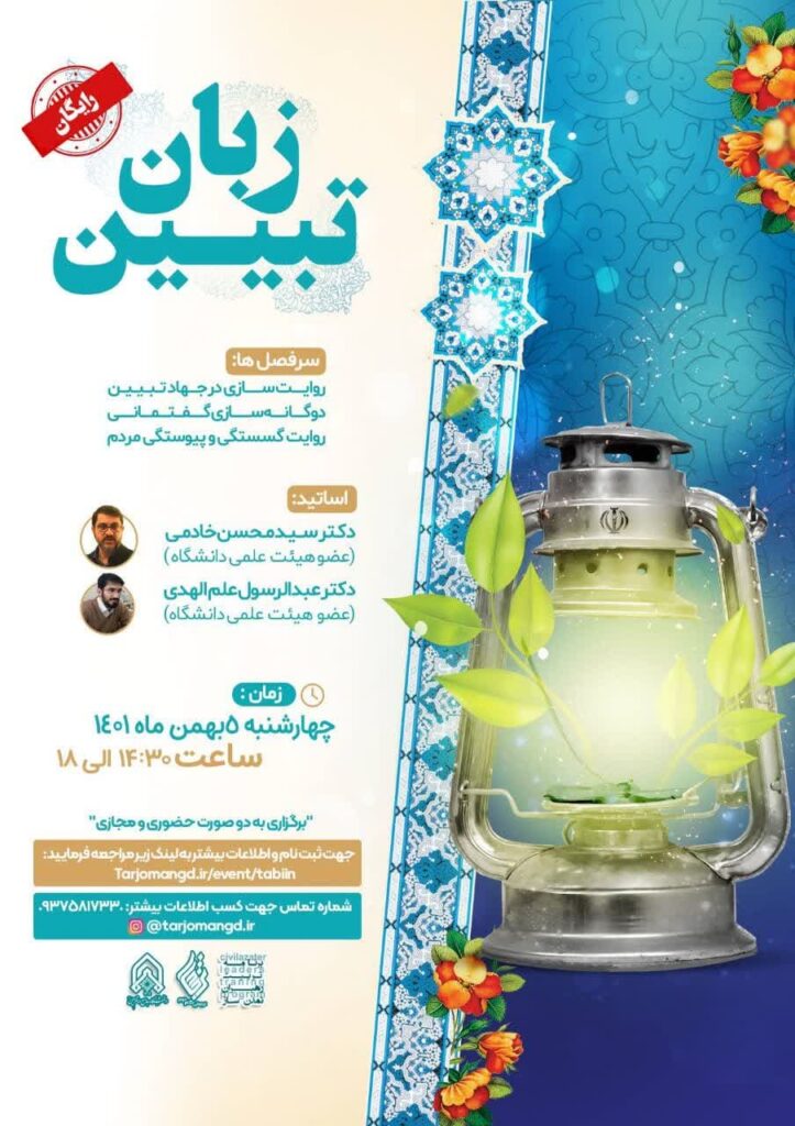 در جلسه بهمنماه زبان تبیین موسسه مشکات بیان، موضوع «روایتسازی در جهاد تبیین» با سخنرانی دکتر عبدالرسول علمالهدی و دکتر سید محسن خادمی، در تاریخ ۲۱ بهمن ۱۴۰۱ برگزار شد.